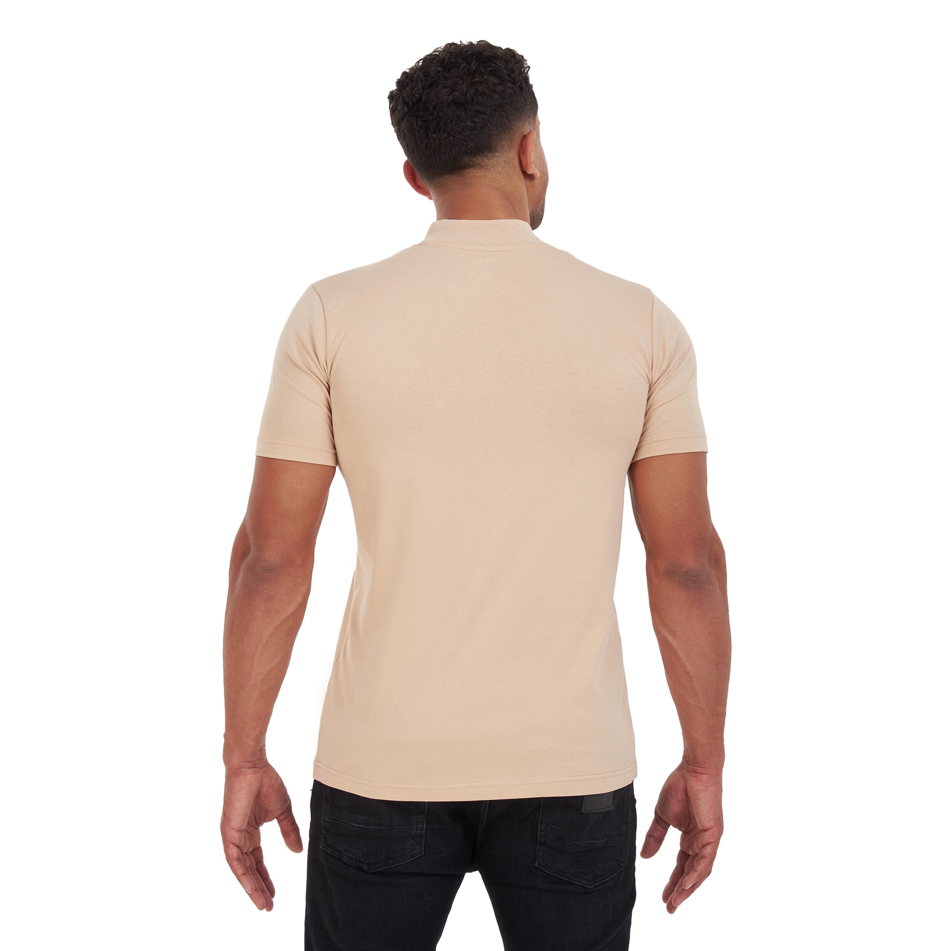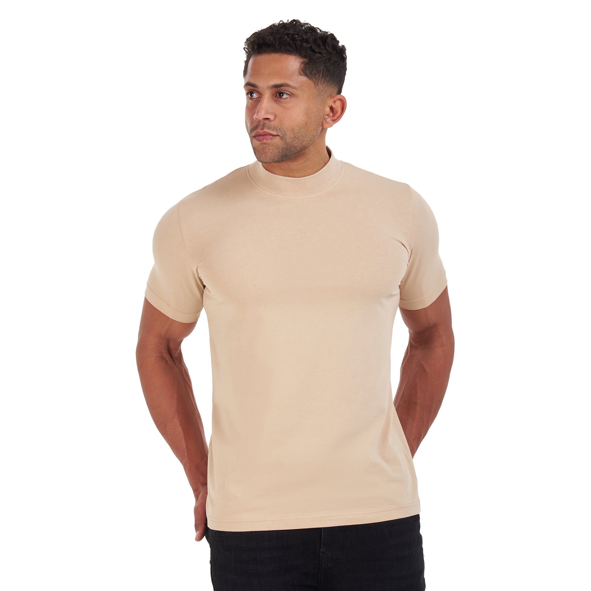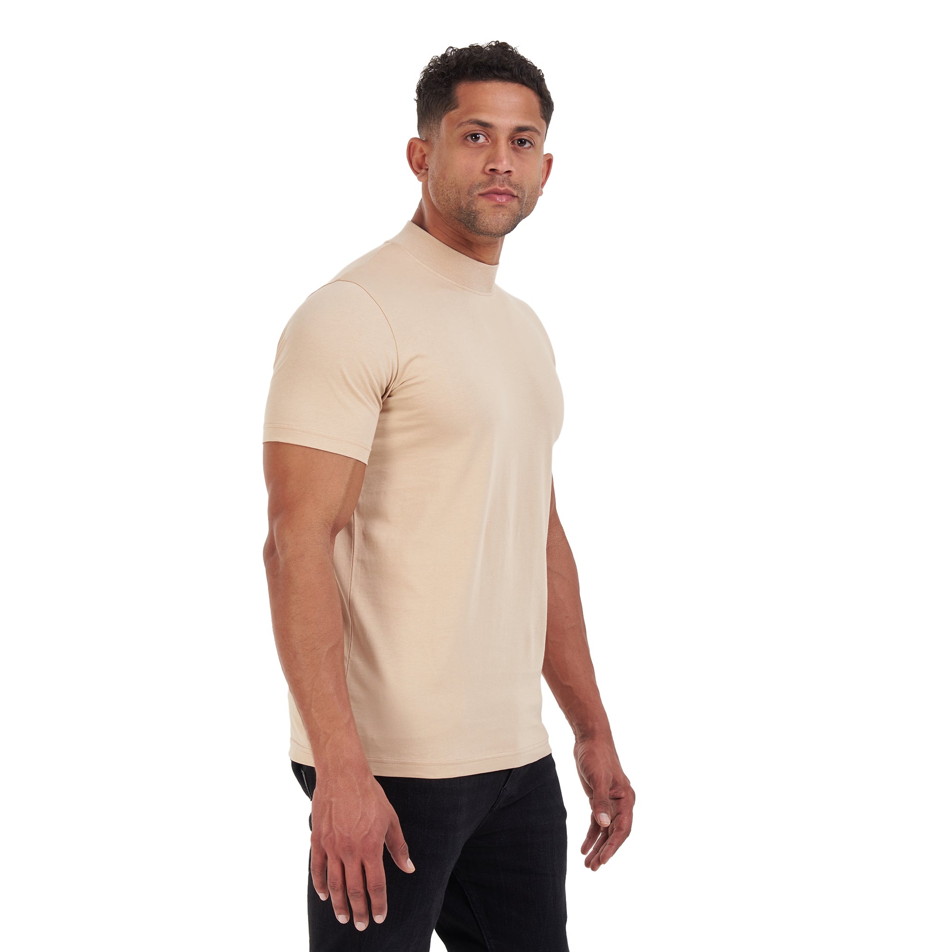 Short sleeve T-shirt with a high neck, and a straight bottom. A comfy summertime essential.